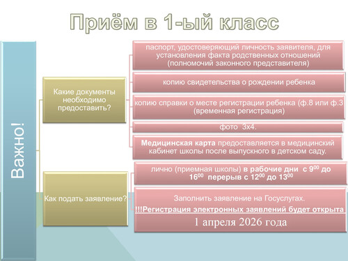 муниципальное бюджетное общеобразовательное учреждение средняя школа № 21 г.Волгодонска с 1 апреля 2026 г. будет осуществлять прием документов в 1-й класс на 2026-2027 учебный год для лиц, проживающих на территории, закрепленной за конкретным муниципальным общеобразовательным учреждением (список закрепленных домов за учреждением см. на официальном сайте школы в разделе «Зачисление в общеобразовательное учреждение»)